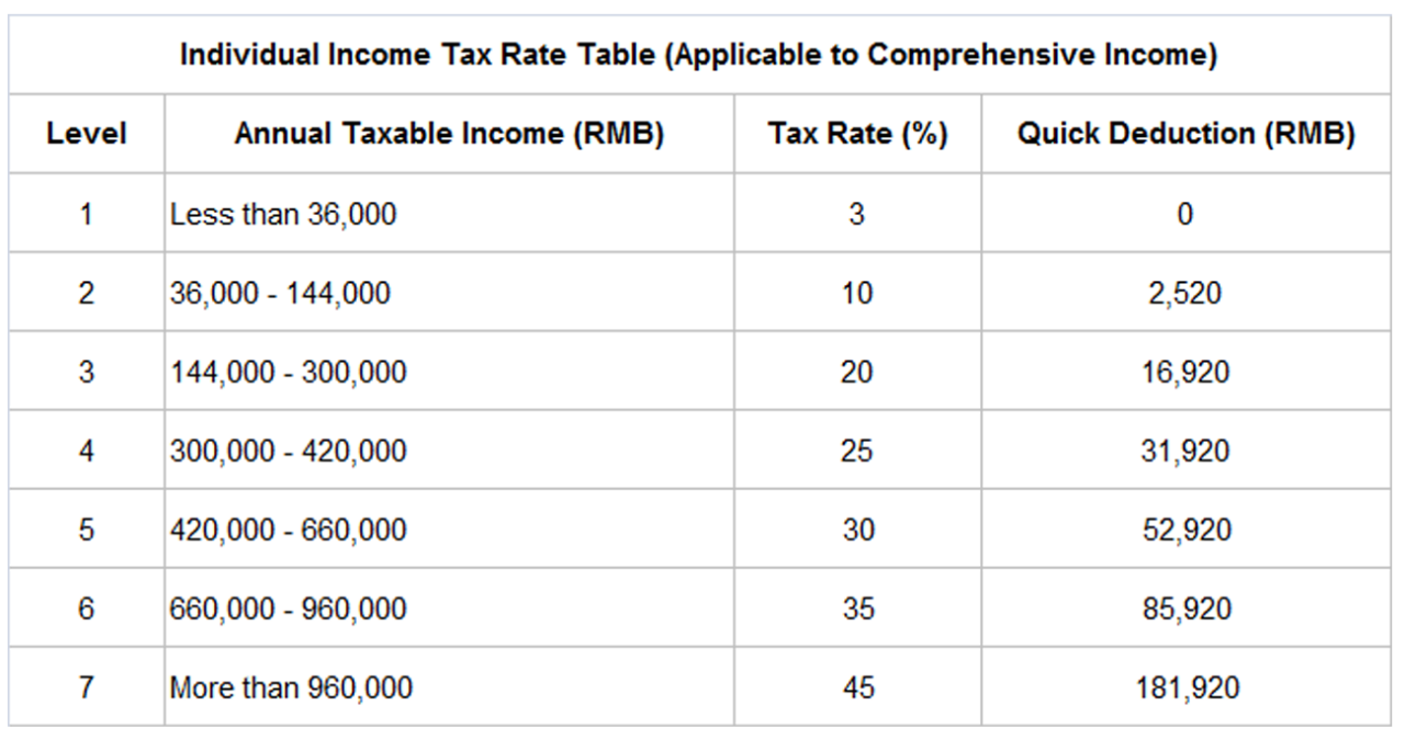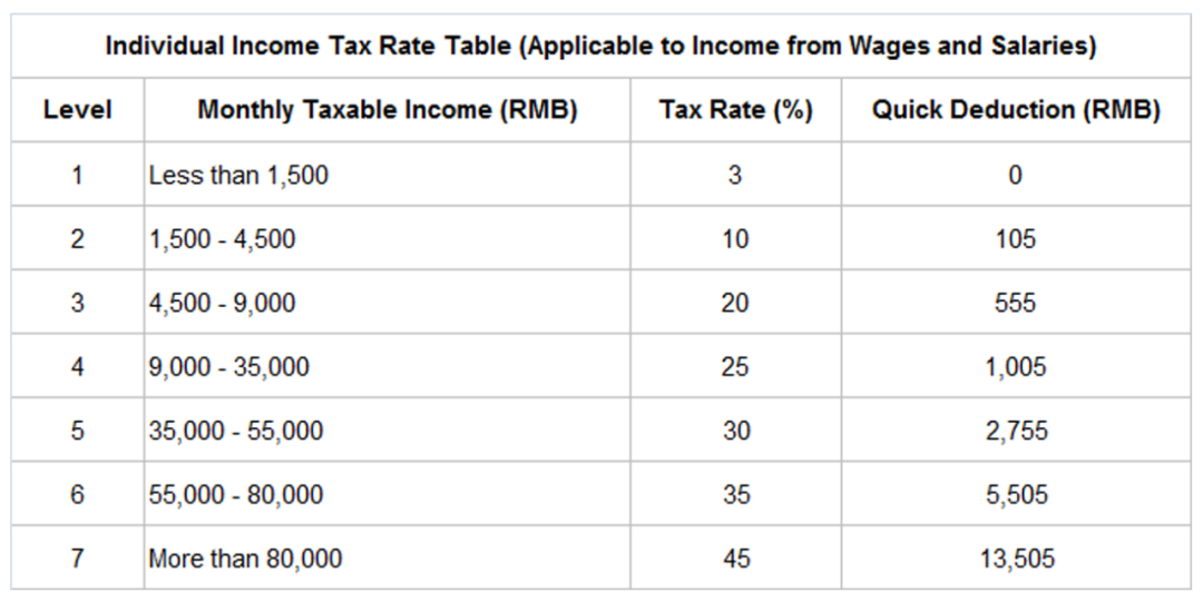 Preciously, the Individual Income Tax was assessed on a monthly basis, with the threshold of RMB 3,500 per month with tax rates as follows: